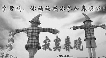 雖然離春節(jié)還有一段時(shí)間,但山寨春晚的話題再一次被提起。昨日,以拍攝草根電影、山寨奧運(yùn)、山寨克隆版《風(fēng)聲》、去年舉辦豬堅(jiān)強(qiáng)草根春晚而聞名的“成都草根劇組”再一次以樂活精神舉起了成都草根春晚的旗幟——今年,成都的草根春晚將大打網(wǎng)絡(luò)牌,將寂寞黨、賈君鵬等一系列轟動(dòng)網(wǎng)絡(luò)的熱門話題納入春晚節(jié)目中,且春晚名字就叫做“寂寞春晚”。為了辦好草根春晚,網(wǎng)友正召集綠林草根,為“寂寞春晚”尋找不甘寂寞的坊間好漢以及山寨場(chǎng)地。