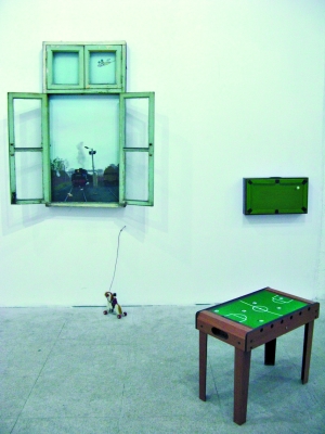 記者了解到,此次展覽以裝置和影像、綜合材料作品為主。夏彥國指出,青年藝術(shù)家是當(dāng)代藝術(shù)以后的主要力量,而裝置、影像也是未來當(dāng)代藝術(shù)發(fā)展的主要方向。比如黑橋藝術(shù)區(qū)的趙一淺在裝置作品《主觀 現(xiàn)場》中將童年記憶中的臺(tái)球桌子、足球場地、小玩具及火車搬入美術(shù)館。而生活在798周邊的陳曦、張雪瑞夫婦將展出的影像作品則是循環(huán)往復(fù)地書寫著畢加索的名言:愛情這種事情是不存在的,存在的只是愛情的證據(jù)。