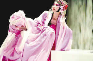 《中國制造——游園驚夢》中,金星把自己大而化之了,將更多的動作交給了群舞演員,自己卻在口唱昆曲的女旦后面,如同影子一樣重復(fù)相同的圓場動作。一前一后,兩個杜麗娘,當(dāng)然可以看作形式上的設(shè)計,但金星不會做一個簡單的決定。衣飾更為亮麗的女旦交錯了杜麗娘的身份和創(chuàng)作者自己的心聲,她是一個站在前臺的代言體,作品真正的主角則處在后面更為安全的位置上裊娜如煙!吨袊圃臁螆@驚夢》可以看作是對《貴妃醉“久”》的延伸,借戲曲女旦代言,使作品充滿了傳統(tǒng)與現(xiàn)代社會的錯亂,但社會性的時間對于癡人來說,從心理上是不存在的,在自我的世界中,只有性別的錯亂、情感的矛盾和心理的惶恐。電影《霸王別姬》中,程蝶衣就是這樣一種人物。