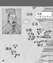 通過對這一百多件族譜的全面查閱、辨別梳理,曹操后裔可能的分布遷移圖逐漸顯現(xiàn),甚至精確到縣——古曹氏主要在漢時(shí)名為沛郡的地方活動(dòng),也就是如今江蘇北部、安徽的一部分、河南到山東交界地區(qū)。從族譜的反映情況來看,此后曹家發(fā)生了很大的遷徙,方向往南走的居多,且主要是分布在長江流域,如浙江的東陽、蕭山、紹興、余姚、金華,江蘇的宜興、鎮(zhèn)江,安徽的涇縣、歙縣、績溪,湖南的郴州、益陽、長沙,甚至包括上海。