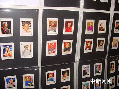 徐州撲克大王姚煥新從收藏的撲克牌中,精心挑選50余副關于女性題材的特色撲克牌并制作成40余塊展板。在巡展現(xiàn)場,記者看到,展板里有以古代女性為主題的《歷代百美圖典》、《中國歷代才女》,也有現(xiàn)代流行的青春偶像《S.H.E》、《臺灣第一美女林志玲寫真》;有中國的《巾幗英!贰ⅰ端问先忝谩,也有外國的《鐵娘子》、《折翅的鐵蝴蝶》;有《二戰(zhàn)魅力女郎》,也有現(xiàn)代《中國女兵》。