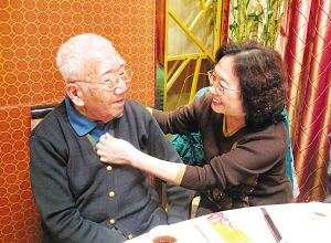 不過,莊夫人“揭發(fā)”道,莊奴也不只是寫情歌,他也有大氣的歌。一說起這,老先生又高興起來,他說,那是臺灣要拍一部電視專題片《詩詞的故鄉(xiāng)》,約他寫主題曲,他寫好了電視片沒拍成,詞卻留下來了,“一瀉千里的詩與詞,詩也美,詞也香……”老先生擊節(jié)吟誦著詞作,豪氣頓生。身邊有佳偶,老先生文思更如泉涌,幾乎是走一路,寫一路。他答應(yīng)記者說,下次來南京,呆的時間長一點,他會專門給南京寫首詞。