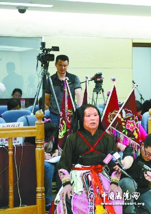肩背五彩靠旗,胸前扎著紅色十字結,腰間系著粉色花裙……昨天,“安順地戲”的演員出現(xiàn)在法庭上。他們不是來演戲的,而是來為貴州省安順市文化局作證,向?qū)а輳埶囍\討“公道”——電影《千里走單騎》中的“安順地戲”為什么被說成“云南面具戲”?