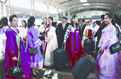 鮮艷的朝鮮族長裙,200多人的龐大團(tuán)隊(duì)。昨日上午,即將在漢演出歌舞劇《紅樓夢》的朝鮮血海歌劇團(tuán)抵達(dá)武昌火車站時(shí),吸引了眾多旅客關(guān)注目光。雖然團(tuán)隊(duì)并未接受媒體采訪,但記者仍多方打探出許多細(xì)節(jié)。