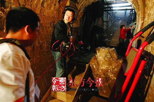 在墓穴底部,有一堵高約1米的土墻,記者注意到,墻內(nèi)鑲嵌著一些磚瓦片,已經(jīng)露出。據(jù)考古人員介紹,在12日的發(fā)掘中,考古人員極有可能剝開(kāi)該堵墻,至于有無(wú)重大發(fā)現(xiàn),值得大家期待。