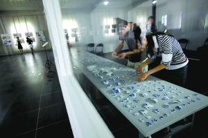 昨日上午,在圓明園內的“文物現(xiàn)場修復展示區(qū)”,數百片大大小小的瓷片擺滿了工作臺,分揀、清洗、拼接……不同的工作人員在對瓷器進行不同的修復工作。