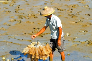 直到上世紀中葉,虎山村90%的農村家庭都以賣泥魚所得作為家庭收入的主要來源,經常成群結隊外出捕魚。至今當?shù)卮迕襁把廣闊的灘涂親切地稱為“泥夾萬”(粵方言,意思是指灘涂上的銀行)。