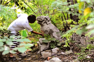 昨天上午,在(北京)香山法海寺遺址內(nèi),附近居民發(fā)現(xiàn),寺內(nèi)立有“大震超地禪師壽藏”(壽藏即生前預(yù)筑的墳?zāi)?石碑,墓穴前的幾塊大石遭人撬壞。記者探訪發(fā)現(xiàn),遺址內(nèi)的石塊被附近陵園的工人運(yùn)走施工。昨天,香山派出所、海淀區(qū)文委介入調(diào)查,要求陵園將石塊搬回。