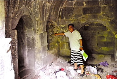 遺址內(nèi)一處標(biāo)有文物保護(hù)單位的“晏公祠”也遭人破壞,里面的石刻被鑿壞,洞穴內(nèi)還遺留著廢舊衣物、報紙、食品袋等垃圾。遺址內(nèi)的工人表示,他們是附近金山陵園的工人。但隨后趕到的金山陵園工作人員表示,此事與他們沒有任何關(guān)系,否認(rèn)此事為他們所為。
