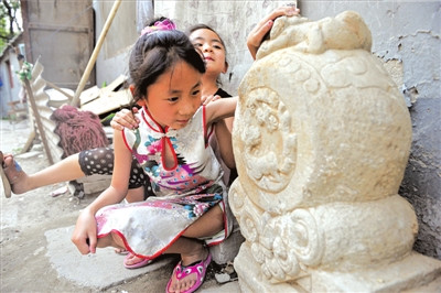 昨天下午,記者來到海淀區(qū)青龍橋街道騷子營社區(qū),石門墩就擺在李玉財家門外。石門墩高約50厘米、寬70厘米左右、厚度約20厘米,由整塊的石材雕刻而成,抱鼓上雕刻有精致的花紋。李玉財說,如果這個石門墩真是文物,他會立刻上交,“文物是國家的,要交給政府,好好保護(hù)起來”。