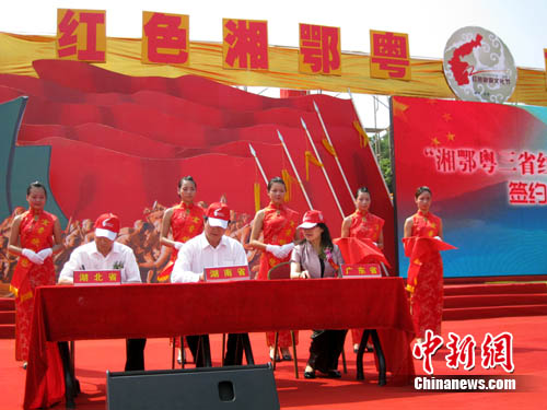 全國政協(xié)原副主席毛致用宣布2010年中國(湖南)紅色旅游文化節(jié)開幕式啟動(dòng)。在啟動(dòng)儀式上,湘鄂粵三省旅游局共同簽署《湘鄂粵三省紅色旅游聯(lián)盟》協(xié)議,緊扣“市場(chǎng)互推、線路互動(dòng)、游客互送”三大主題,借武廣高鐵為“媒”共同打造紅色旅游品牌。