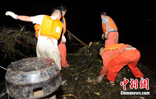 中新網(wǎng)重慶7月19日電(郭虹 朱治宇) 預(yù)計(jì)今天下午5時(shí)過(guò)境的長(zhǎng)江今年以來(lái)最大洪峰將晚點(diǎn)3個(gè)小時(shí),于晚八點(diǎn)左右通過(guò)重慶主城。連續(xù)兩日來(lái),江水上漲了15米多,江水不僅淹沒(méi)了江邊一些房屋,江中的漂浮物還對(duì)江上航標(biāo)形成威脅。