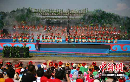 中新網(wǎng)西昌8月4日電(記者劉忠俊)4日上午,四川涼山州西昌市數(shù)千名群眾身著節(jié)日盛裝,跳起了獨(dú)具民族特色的歌舞,拉開了第六屆中國(guó)•涼山彝族國(guó)際火把節(jié)的序幕。