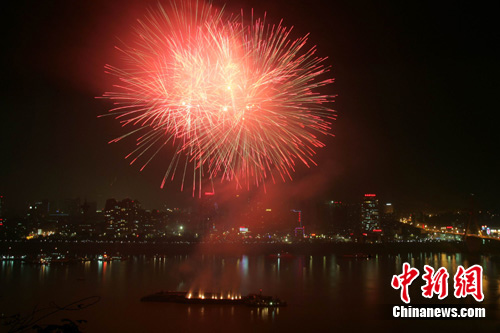中新網(wǎng)宜昌9月30日電(記者 劉良偉 上官純青)30日晚,水電之都、旅游名城湖北宜昌萬(wàn)人空巷,人如潮涌,游玩三峽的五湖四海賓朋和廣大宜昌市民歡聚一堂,齊聚該市江濱觀看了“旅游名城迎國(guó)慶”焰火晚會(huì)。30000發(fā)各式禮花彈從夷陵長(zhǎng)江大橋上游400米江心處次第升起,帶來(lái)了39分鐘的視覺(jué)盛宴。在濃郁的節(jié)日氣氛中,共同慶祝偉大祖國(guó)六十一歲華誕。