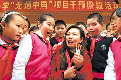 珊瑚實驗小學規(guī)定,任何人在教室、走廊、辦公室、操場、廁所等公共場所都不得吸煙,校領導當場賦予全校數(shù)千學生監(jiān)督員的權力,若發(fā)現(xiàn)老師有違反規(guī)定的吸煙行為,都可直接向校長公開電話舉報。違反規(guī)定的吸煙老師,將受到扣發(fā)獎金、影響班組評先進等處罰。同時,珊瑚實驗小學專門開辟了一間“吸煙室”,防止學生受被動吸煙危害。