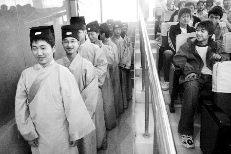 啟動儀式上,10個身穿漢服、頭戴漢帽的男生和10個身穿粉色漢服的女生一起,演繹了傳統(tǒng)禮儀,包括鞠躬、問好等。據(jù)團市委書記高京燕介紹,活動將持續(xù)三個月,由國學(xué)、傳統(tǒng)禮儀等老師組成的講師團,將于4月份在中學(xué)、大學(xué)開15場講座,教學(xué)生學(xué)習(xí)傳統(tǒng)禮儀、現(xiàn)代禮儀等文化。 (記者 丁亞菲)