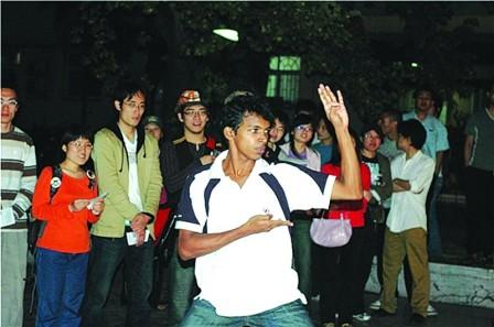 瑞士留學(xué)生“飄零”的一套“詠春拳”博得滿場喝彩,他用不太流利的漢語自我介紹:“我來中國已經(jīng)八個(gè)月,我從小就很喜歡中國武術(shù),這套詠春拳是我到廣東佛山時(shí)向當(dāng)?shù)厝藢W(xué)習(xí)的”;來自斯里蘭卡的米奇也不甘示弱,拿著中國的雙節(jié)棍“哼哼哈哈”的舞了起來。十余名留學(xué)生還跟著幾名中國學(xué)生練起了太極拳,一邊練拳一邊學(xué)說漢語……“漢語角”負(fù)責(zé)人白彥介紹:“許多外國朋友雖然學(xué)了中文,但在生活中依然存在著許多不便,在外面就餐、游玩時(shí)經(jīng)常會(huì)遇到語言障礙。于是我們便仿照‘英語角’的形式舉辦‘漢語角’,既讓外國人練口語,也能讓他們了解中國傳統(tǒng)文化。”(記者談海亮 通訊員張聞 林賢宰)