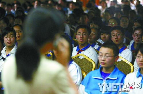 “天佑中華”主題教育活動從下午4點(diǎn)30分開始,在簡單的問候后北京十一學(xué)校教導(dǎo)處陳雪芬副主任向北川中學(xué)校長劉亞春詢問,“是什么力量讓北川中學(xué)克服如此重重困難?”劉亞春校長難掩悲痛地說:“其實(shí)作為教師,苦難中首先救助學(xué)生是教師本能的表現(xiàn)。對于那些罹難的師生來說,他們的生命不是消逝了而是永恒了,幸存者也變得更加堅(jiān)強(qiáng)。在今后的日子里,各方的關(guān)心和關(guān)注以及北川中學(xué)師生堅(jiān)強(qiáng)不屈的意志,都是我們戰(zhàn)勝艱難的最基本動力!痹捯魟偮洌本┦粚W(xué)校近千名學(xué)生報(bào)以熱烈的掌聲。