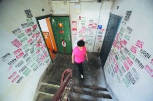 在南秀村居住了40年的吳大爺告訴記者,他沒(méi)事就用乳膠漆在樓道內(nèi)刷刷補(bǔ)補(bǔ),但通常情況都是,蓋上一層沒(méi)多久就又添“新衣”,甚至連樓梯扶手都不放過(guò)。一位居民更氣憤,有一次他們家的水電催繳單貼在樓道里,沒(méi)多久就被小廣告淹沒(méi),自己只好為此搭上許多滯納金。