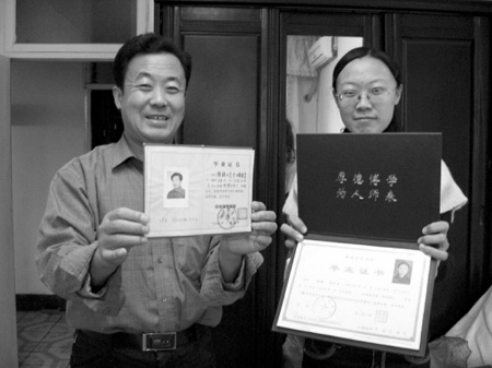 父親和女兒的“兩代”大學畢業(yè)證