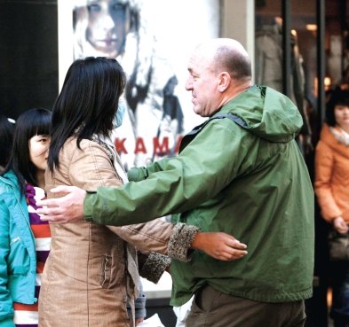 黃坤用英語向一位高大的中年老外發(fā)出了擁抱請(qǐng)求,這位美國人突然愣了一下。接著,黃坤又向他解釋了一遍。這一次,老外張開寬闊的臂膀緊緊地把黃坤擁入懷中,連聲說:“No Problem!(沒問題)”