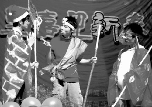 “幾天前,校園里就貼出了由文學院學生自編自導自演的山寨版《西游記》即將開演的消息,我們都是慕名而來,倒要看看這部所謂的“山寨劇”到底能把原著‘糟踐’到什么程度!庇⒄Z專業(yè)的劉同學說。