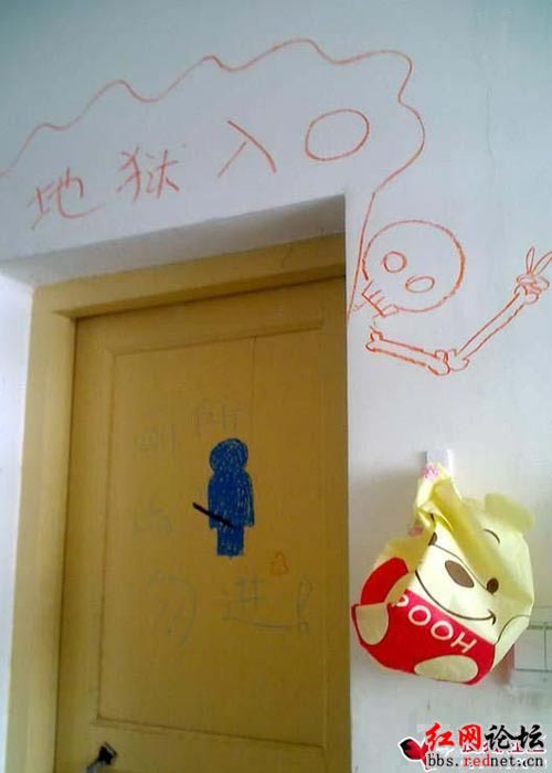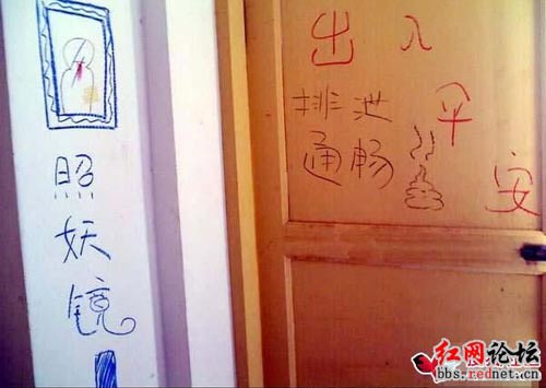 新婚快樂!天堂入口,地獄入口,照妖鏡……臨近寒假,某大學的一群女生集體在宿舍墻壁上涂鴉,創(chuàng)作了一批讓她們沾沾自喜的“杰作”。有好事者把“杰作”拍下來,發(fā)到紅網(wǎng)論壇,引來上萬網(wǎng)友回帖無數(shù)。
