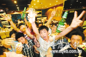 昨下午6點(diǎn)剛過(guò),主城各區(qū)繁華路段,處處可見考生們聚會(huì)歡慶場(chǎng)面。