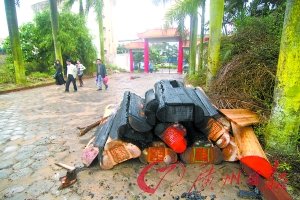記者在現(xiàn)場看見,7副棺材堆放在一大院內,且有幾副已被燒焦。該大院所占面積很大,院內較空蕩,有幾處拆毀的樓房,院中一棟樓房住著人家,空地當天剛好下雨,陰沉沉的天氣,這堆棺材讓這個位于市中心的大院的氣氛顯得非常詭異。自稱該民宅的女主人告訴記者:“這堆棺木是4月1日運過來的!