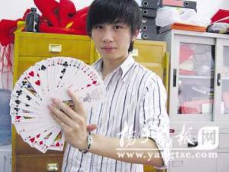 揚(yáng)州大學(xué)物理學(xué)院物理教育應(yīng)屆畢業(yè)生王杰長(zhǎng)相酷似劉謙,特別喜歡魔術(shù),在東南衛(wèi)視與劉謙同場(chǎng)錄制節(jié)目時(shí)被誤認(rèn)為是“雙胞胎”。小王先后10次被邀請(qǐng)到省級(jí)電視臺(tái)做客,前不久還喜獲江蘇省魔術(shù)大賽大學(xué)生組冠軍。他表演魔術(shù)15分鐘收入千元,最近半年進(jìn)賬萬(wàn)余元。師范專(zhuān)業(yè)的小王目前已如愿以?xún)數(shù)嘏c大連一家魔術(shù)團(tuán)簽約,即將成為一名專(zhuān)業(yè)魔術(shù)師。