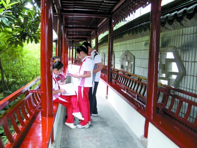 據(jù)育民中學校長孫建良介紹,該校校園內(nèi)的“承園”是清末民初高橋四大私人花園之一,現(xiàn)已被列為“高橋老街風貌保護區(qū)”的景點。為確保“修舊如舊”,校方曾多次去有特色的楊思中學、觀瀾小學和松江二中學習考察,甚至專程到全國著名花園式學校蘇州十中討教修復性保護的經(jīng)驗。