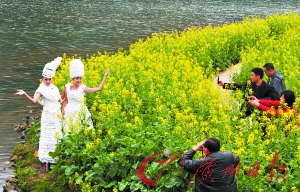 本報訊(記者海國攝影報道)昨日,從化石門公園金海節(jié)開幕前,來自西安交大的兩名女大學(xué)生,分別身穿一件全部由白紙制的成環(huán)保衣服,穿梭在花中向游人宣傳環(huán)保觀念。據(jù)該服裝設(shè)計的作者、環(huán)保主義者朱女士說:創(chuàng)作靈感來自哥本哈根會議。兩件服裝分別花費一個星期,用了90多筒卷紙折疊而成,希望人類保護自然,愛護環(huán)境,不然五光十色的地球?qū)⑼噬,變成單一的白色?table border=0 cellspacing=0 cellpadding=0 align=left>