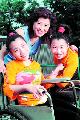 為了讓女兒站起來,她獨自帶著孩子七上北京、兩下廣州,跑過十幾家醫(yī)院。在北京求醫(yī)時,她就背著女兒們坐公車、坐地鐵、爬樓梯。2003年,她的大女兒站起來了!爸灰齻冇幸稽c點進步,我就很高興!彼f,為了孩子的幸福,為了自己的幸福,還得堅持下去。