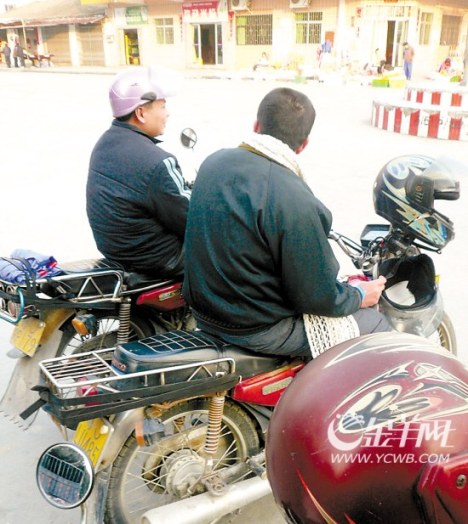 在恩城新平路,羊城晚報記者找到了自動辭職做摩托車搭客仔的代課老師梁東成。據(jù)梁東成說,他在某學校做代課老師只有5年,覺得代課老師始終還是臨時工,沒有什么保障,于是便自動辭職。去年花6000元買了一輛摩托車到恩城做摩托車搭客仔,每天搭客除去買油維修費凈掙約50元,一個月大概有1500元左右收入。