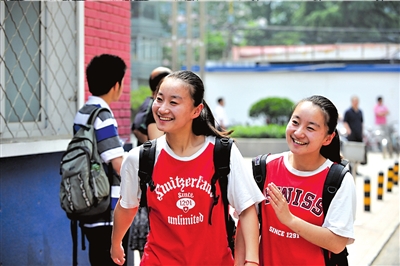 姐妹倆都是中關(guān)村中學(xué)的學(xué)生,姐姐叫王裔文,妹妹叫王裔靜。昨天姐妹倆一起出現(xiàn)在北大附中門(mén)口,接送的父母遠(yuǎn)遠(yuǎn)離開(kāi)。和其他女生不一樣,姐妹倆走起路來(lái)虎虎生風(fēng),有點(diǎn)假小子的英氣。對(duì)于頻頻參加重大比賽的姐妹倆來(lái)說(shuō),似乎更能適應(yīng)高考的壓力。她們?cè)谛iT(mén)口興奮地和老師、同學(xué)們擊掌打氣,王裔文的班主任開(kāi)玩笑地后退一步:“你的掌力那么大,我可吃不消!