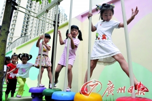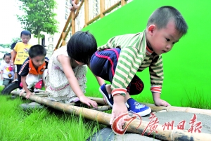記者在現(xiàn)場見到,與其他幼兒園不同的是,剛開辦的禪城區(qū)天湖酈都幼兒園1700平方米的戶外活動場地上,布滿了“梅花樁”、“吊臂橫桿”、“高空爬網(wǎng)”、“水泥管”、“迷宮”、“碎石路”等各種各樣的設(shè)施,儼然一個小型“戶外軍事拓展基地”。
