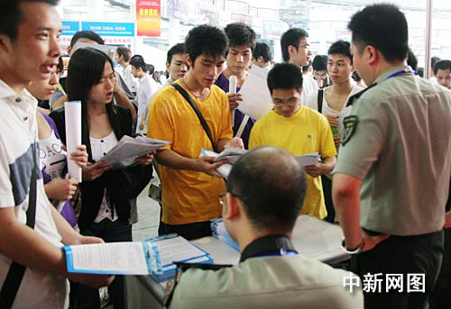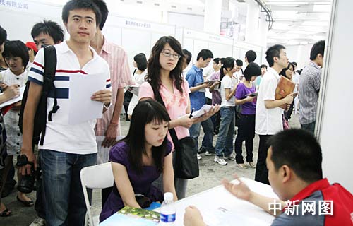 中新網(wǎng)重慶6月15日電 (郭虹 孟幻) 15日,重慶市2009年普通高校畢業(yè)生就業(yè)雙選會(huì)舉行,370多家用人單位提供近1萬(wàn)3千個(gè)崗位,吸引了上萬(wàn)名畢業(yè)生前來(lái)求職。