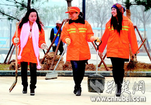 荊楚網(wǎng)消息 (楚天金報) 記者石亮、鄒斌報道:很多人不會把年輕、時尚和環(huán)衛(wèi)工想到一塊,更少把大學(xué)生和環(huán)衛(wèi)工聯(lián)系到一起。在武漢火車站東廣場,三名年輕時尚的女大學(xué)生,就高高興興地做起了“城市美容師”。同事們贊許三人:“干得挺不錯!”