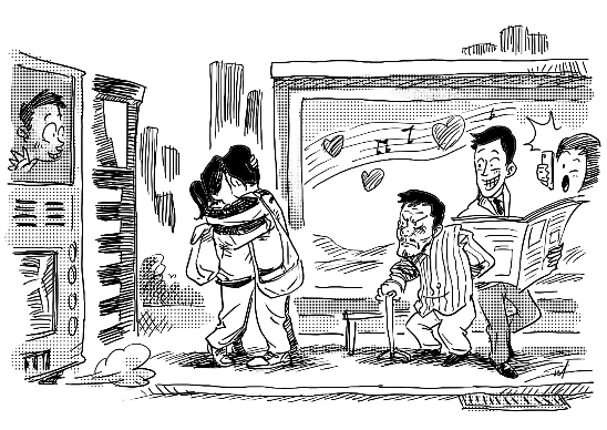 經(jīng)常在這里等車的人都見過這對學生戀人。初三女學生小張有點害羞地說:“愛情很美好,戀愛也正常,我們隔壁班有七八對這樣的戀人,老師也都知道。其中一對學習都很好,成績在班上都能排進前十名。”