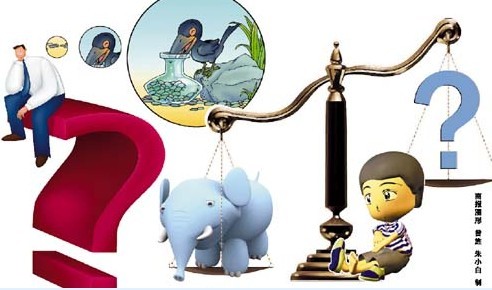 《曹沖稱象》是一篇贊揚(yáng)小孩聰明的文章,五六歲的曹沖就能夠想到用石頭代替大象稱重的方法。同樣是在這本課外教材里,《曹沖稱象》也被改成了雷人的題目,“不用稱石頭的方法,還能想出更好的辦法來稱象嗎?”