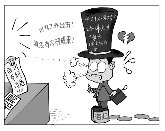 而資深人力資源專(zhuān)家表示,現(xiàn)在的企業(yè)老總,看著海歸有點(diǎn)犯難。
