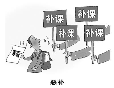 據(jù)《瀟湘晨報》1月20日報道,一名學(xué)生在網(wǎng)上發(fā)出“反補(bǔ)課倡議書”,號召全國學(xué)校成立“中國反補(bǔ)課學(xué)生聯(lián)盟”。網(wǎng)帖中,這名學(xué)生講述了自己在寒假補(bǔ)課時的心情:“補(bǔ)課的重壓下,神經(jīng)搖搖欲墜,做夢都夢到ABCD。”