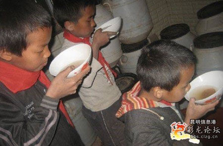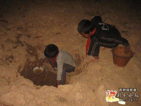“不忍心拍這些照片,因?yàn)槲覜](méi)幫到孩子們什么!”日前,網(wǎng)友“haotian”在彩龍論壇上發(fā)了篇題為《旱情加重,學(xué)生喝水告急》的圖片帖,稱是在云南南華縣灑披武村拍攝的,因?yàn)槿彼畬W(xué)生們很久不洗手了,吃飯后只能到河里或幾近干枯的井里打些渾濁歲來(lái)解渴,照片被各大網(wǎng)站轉(zhuǎn)載后,不少網(wǎng)友稱看著讓人想哭。文/滾動(dòng)新聞?dòng)浾?耿紅仁 圖/“haotian”提供