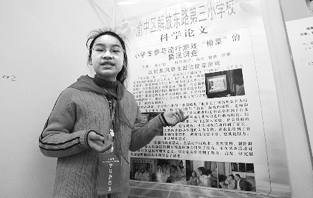華龍網(wǎng)訊(記者 紀文伶)“請問你經(jīng)常偷菜嗎?”10歲的梁心怡走遍了學(xué)校、網(wǎng)吧、社區(qū),將這個問題重復(fù)了數(shù)百遍。她可不是閑著沒事干。渝中區(qū)解放東路第三小學(xué)五年級的這個小姑娘花費半年多時間發(fā)出300份問卷調(diào)查,本月寫下近6000字論文——《小學(xué)生參與流行游戲“偷菜”的情況調(diào)查》,在我市25屆青少年科技創(chuàng)新大賽中獲創(chuàng)新大獎。
