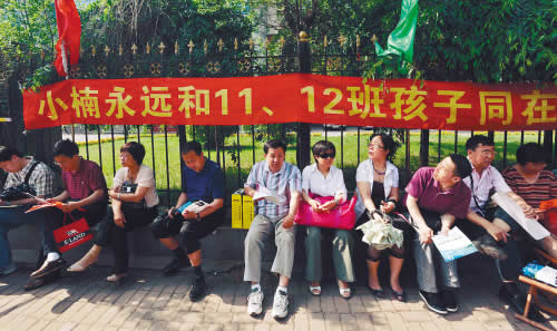 在43中學(xué)考點(diǎn)前,一條紅色標(biāo)語(yǔ)讓人關(guān)注!靶¢肋h(yuǎn)和11、12班的孩子同在!”。這位小楠是誰(shuí)?一位家長(zhǎng)告訴記者,小楠是考生的班主任,他們是120中學(xué)的。小楠老師班里同學(xué)被分到不同的兩個(gè)考點(diǎn),小楠老師去11中學(xué)考點(diǎn)陪考了,怕冷落了這邊考點(diǎn)的學(xué)生們,特意做了條幅!斑@位老師真好,人不到心到了。孩子看到條幅也會(huì)覺得踏實(shí)的!币幻麑W(xué)生家長(zhǎng)這樣說。