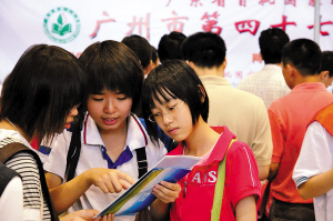 本報(bào)訊 記者陳學(xué)敏、黃玉杰,實(shí)習(xí)生黃杰敏,通訊員戴秀文報(bào)道:雖然天公不作美,但昨天清晨開(kāi)始的那場(chǎng)大雨,根本沒(méi)有減退家長(zhǎng)的熱情。2009年廣州市中招現(xiàn)場(chǎng)咨詢(xún)會(huì)吸引了從四面八方趕來(lái)的家長(zhǎng),令原本可以同時(shí)容納上萬(wàn)人的琶洲C展館顯得有點(diǎn)“擠”。