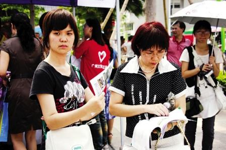 昨日氣溫高達(dá)35攝氏度,太陽下的大學(xué)城像個蒸籠。家長、考生和高校老師們汗流浹背,各高校的教師、領(lǐng)導(dǎo)一直堅持在崗位上;考生往往是全家出動。廣州市招辦組織家長和考生分坐30部大巴免費在廣州大學(xué)主會場和各高校間穿梭參觀。