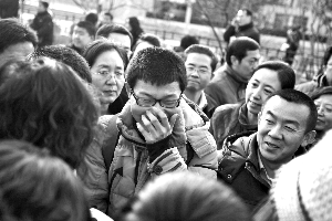 昨天的北大自主招生面試考場(chǎng)設(shè)在文史樓。上午11時(shí),第一批面試完的考生走出考場(chǎng)。尚在等待下午和今天面試的考生,隨即圍上來打聽考題的風(fēng)格。據(jù)考生介紹,同時(shí)進(jìn)行面試的有12個(gè)考場(chǎng),面試過程中是五人一組,三名評(píng)委。在面試中要先抽題,上午的題目共12道,考生有兩次抽題機(jī)會(huì),如果第一次抽到的題目不太有把握,還有第二次抽題的機(jī)會(huì),但第二次抽題之后就只能答這一題,不能再反悔。
