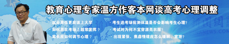 心理篇:高考在即,考生和家長都不免產(chǎn)生焦慮的情緒,事實上,家長的壓力是造成考生焦慮緊張的主要原因。家長過分強調(diào)高考的重要性導(dǎo)致孩子精神緊張,而考生在考前焦慮、煩躁,很大程度上是因為對自己的定位不準確。[詳細]