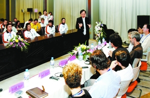 右上圖 姚期智教授在主持講授團專家與大學生座談 郭海軍攝